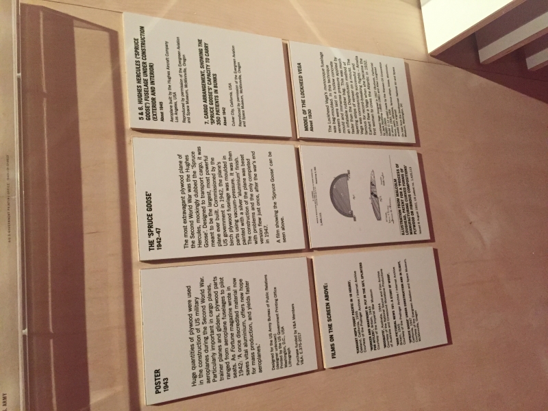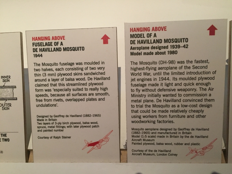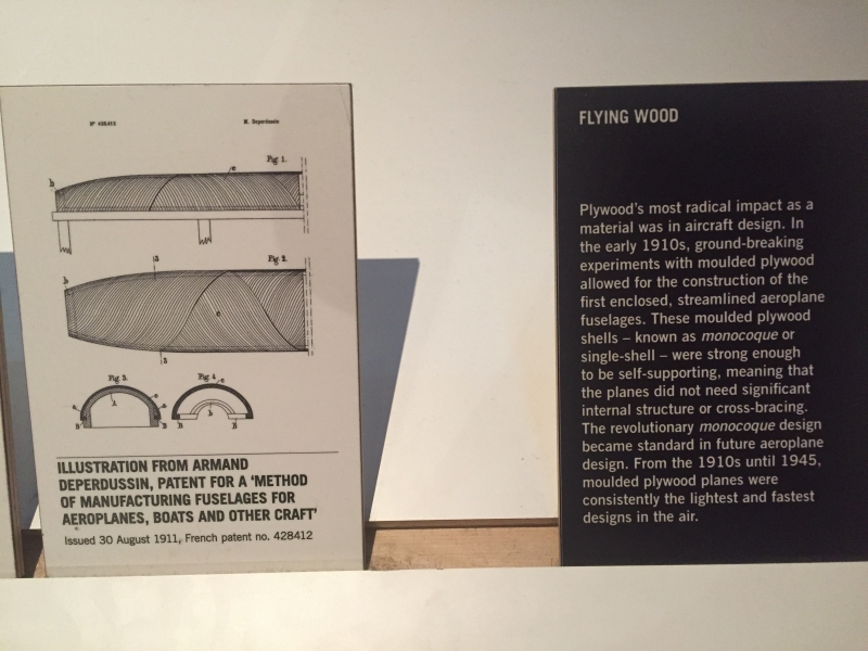 The recent Plywood exhibition at the V&A Museum showcased the innovative use of the material in aviation that is well known. The de Havilland Mosquito was well covered with a period film showing construction, models and examples of the fuselage and fuel tanks. The use of a light weight material which wasn't in high demand such as aluminium combined with the Rolls-Royce Merlin engine produced one of the fastest aircraft of the Second World War. Also included the de Havilland Albatross, an interwar airliner designed for high speed services between capital cities. The Airspeed Horsa, a glider crucial in the Normandy and Arnhem operations as well as the long range Lockheed Vega used by Amelia Earhart for record breaking flights.