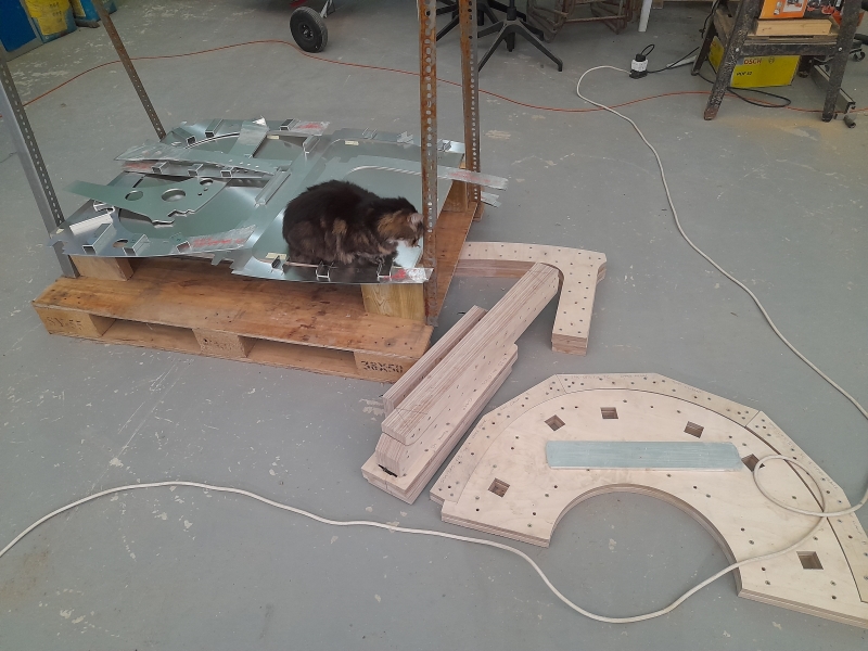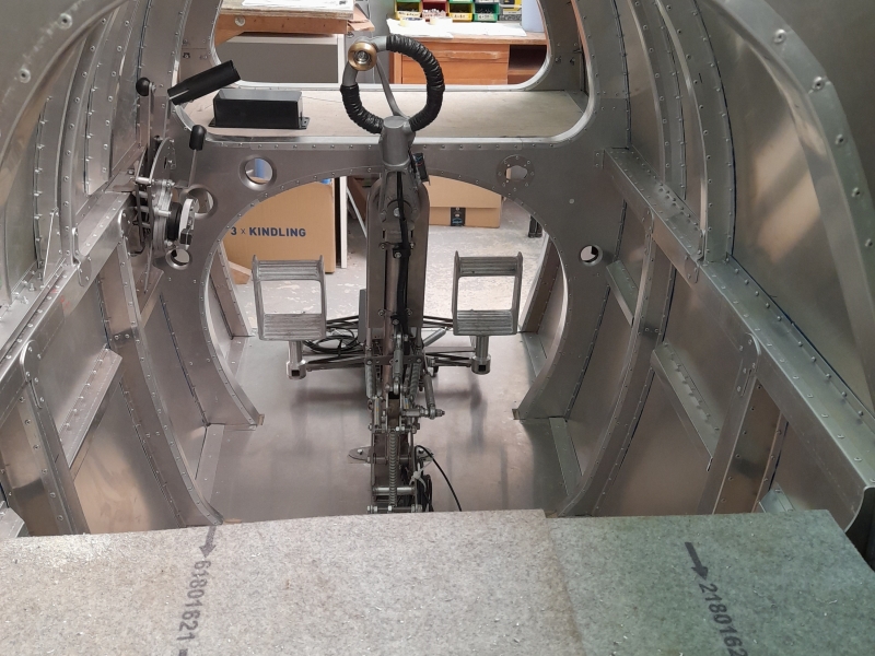Our Spitfire simulator continues to progress with the controls connected together under the supervision of Millie the cat!